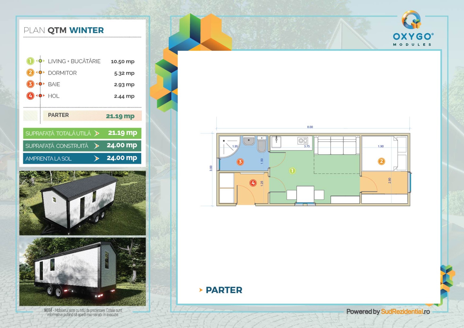 OxyGo Modules Group divizia de case modulare si constructii rapide a grupului SudRezidential.ro iti propune un model inedit de casa mobila (pe roti) numit Qtm WINTER.